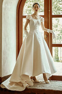 Abito da sposa Maniche illusione Autunno Tulle Scollo a v Profondo scollo a vSono al settimo cielo, la qualità è superba. Le cuciture erano così professionali e il disegno intricato sembrava semplicemente meraviglioso. Fatto a mano molto bene. Grazie ai sarti che l'hanno realizzato!