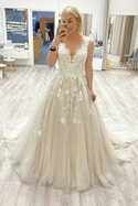 Abito da sposa Pulsante Spiaggia Maniche lunghe Maniche illusioneQuesto vestito era davvero stupendo!! Ho dovuto apportare qualche modifica, ma nel complesso la qualità dell'abito era incredibile. Ho anche comprato il mio bouquet da questo sito.