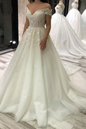 Abito da nozze Applicato Fuori dalla spalla Primavera Chiesa Sovrapposizione di pizzoLa qualità, il colore ecc. dell'indumento erano perfetti. Grazie per il servizio efficiente. Anche il vestito mi sta perfettamente.