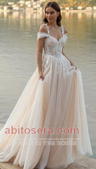 Abito da sposa Tulle Primavera Vita naturale Fuori dalla spalla